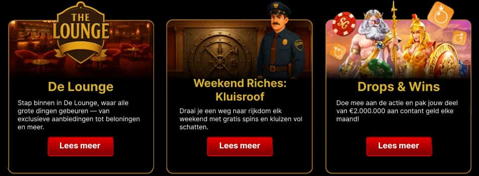 Bekijk regelmatig de Promoties-pagina of meld je aan voor e-mailmeldingen om niets te missen. De meeste bonussen hebben duidelijke inzetvereisten (meestal rond de 40x), dus lees de voorwaarden goed door voordat je ze activeert.